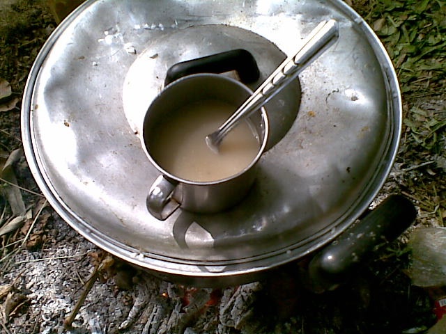 หลังจากนั้นก็เอาใบไม้มาปิดไใว้ เพื่อเก็บความร้อน ไม่ให้ระเหยไปไว