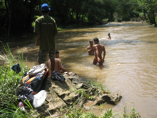 รอน้ำลดตั้งแต่เช้ายันบ่าย นำ้ลดลงแค่ 2 นิ้วเอง จึงเคลื่อนขบวนไปดูทางข้ามลำห้วยอีกที่