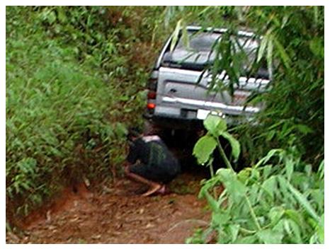 ตัวเงินกลับรถลงมาอย่างหวาดเสียว เพราะรถบังคับไม่ได้เลย ต้องหักเข้าหาเขาจึงหยุดรถได้
