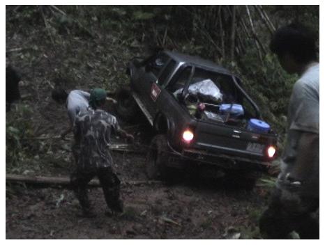 จอดอีกแล้วครับท่าน ขึ้นไม่ได้แล้ว ทั้งลื่นทั้งชัน ถอยดีกว่า และจะถอยยังไงล่ะ