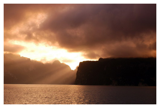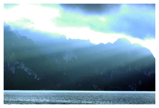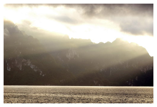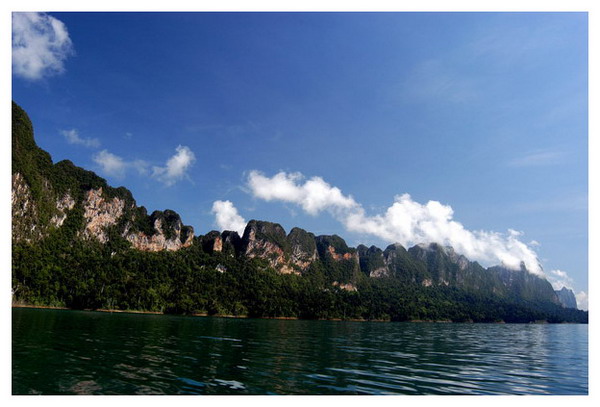 รูปนี้เป็นวิวระหว่างนั่งเรือไปเดินเท้า ดูขุนเขาทอดตัวดุจดั่งกำแพงยักษ์เลย