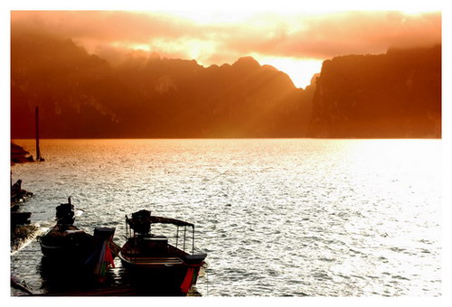 สักพักเรือก็วิ่งเข้ามาสร้างเรื่องราวให้กับภาพดุจดังนัดกันไว้