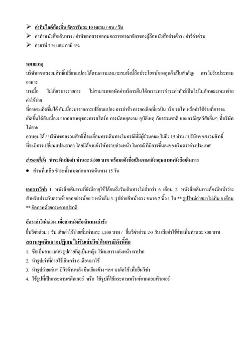 • หลักฐานต้องส่งให้บริษัทฯ ล่วงหน้า 10 วัน ก่อนการเดินทาง (ไม่รวมวันหยุดราชการ) ส่งหลักฐานช้ากว่ากำหนด ท่านจะต้องเสียค่าเร่งวีซ่าเร่งด่วนเอง แล้วแต่ทางสถานทูตจะกำหนด ตั้งแต่ 1,500 - 2,500 จากราคาปกติ