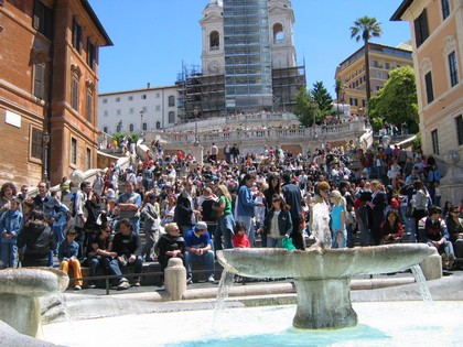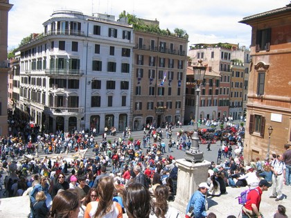 เดินมาไม่นานก็มาเจอ บันไดเสปนครับ สร้างโดยชาวโรมันนะ เพียงแต่ว่าติดสถานฑูตเสปนเท่านั้นเอง เป็นที่นัดพบของคนหน่มสาว มาเดททันที่นี่ คล้าย ๆ บันไดสยามเซนเตอร์บ้านเราสมัยก่อน