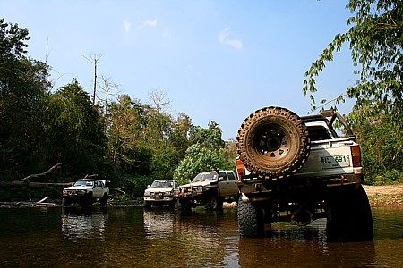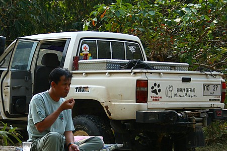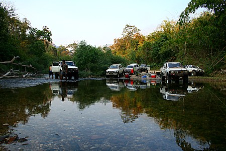 ทริปนี้บูรพาฯเราเขี่ยบอลกันอยู่ 3 หน้ากระทู้ ถึงสรุปกันได้ว่าจะไปไหนกันดี เมืองกาญฯครับเมืองกาญฯ เมื่อนัดกันเป็นที่เรียบร้อยก็ออกเดินทางกันเลย พวกเราออกเดินทางเย็นวันศุกร์เหมือนเช่นเคย ถึงจะเป็นทริปแค่ 2ดาวก็ตามทีเถอะ มีพี่ใหญ่ม้ากระโดดไล่ตามมาเช้าวันเสาร์ ทริปนี้บูรพาฯมากันแค่ 6 คันครับ พี่ใหญ่ม้ากระโดด/หนูขาว/กระทิงโทน/เจ้าโคขุน/เสือซ่าส์ และ น้องใหม่เอี่ยมอ่อง เก๋าลัด(เผือก)