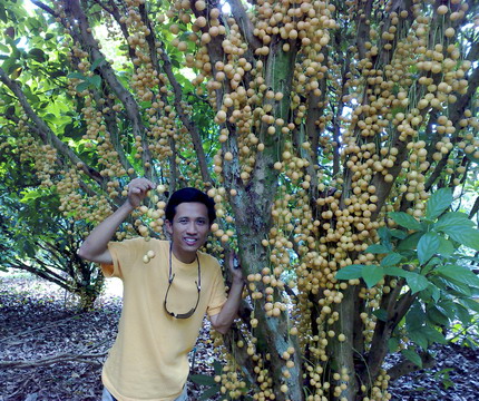 * ผล เป็นพวงช่อขนาดใหญ่ ประมาณ 15 ซม. ผลดิบมีสีเขียว ผลแก่
