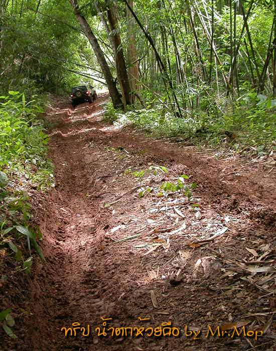 เนินแรกขนาดฝนเพิ่งหยุด ลุงนพ ก็ลากสลิงจนลิ้นห้อยแล้ว