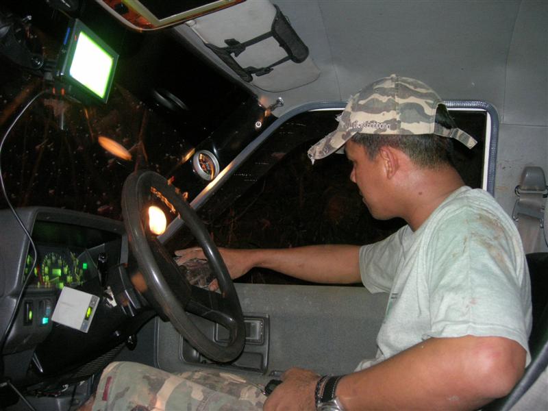 เปรียบเทียบความสูงให้เห็นชัด ศิษย์พี่ ศิษย์น้อง (ทีม A)สำรวจลาย ก่อนที่จะขึ้นรถ แล้ววิทยุบอกคันหลัง (ทีม B)ว่า ถอยหลังหน่อย ผมจะเลี้ยวไปลายขวา