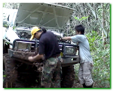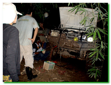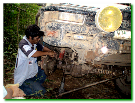 ขณะที่จอดซ่อมมือลิงให้ม้ากระโดดอยู่..เห็นศิษย์พี่ก้ม ๆ เงย ๆ อยู่ที่ล้อหน้าขวาของหนูขาว.. ปรากฎว่าครัชซีฉีกง่ะ ช่างเขี้ยวงานเข้าอีกแล้ว..แต่ต้องต่อคิวม้ากระโดดนะ