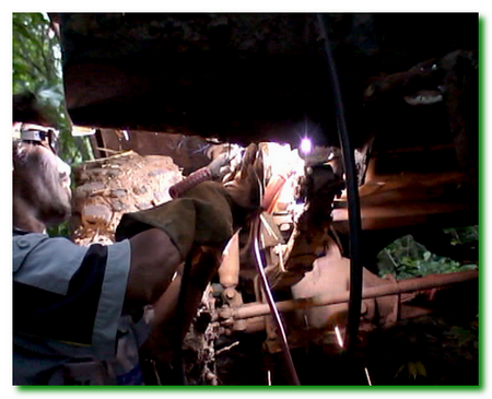 ผ่านด่านหินมาได้ซักระยะ..ศิษย์พี่ก็ไปไม่ได้ซะแล้ว..รอยเชื่อมที่เชื่อมไว้เอาไม่อยู่..งานนี้ฉีกหนักกว่าเก่าอีก..น้ำมันเพาเวอร์ไหลจนเกือบหมด...ต้องจอดซ่อมอีกครั้ง...