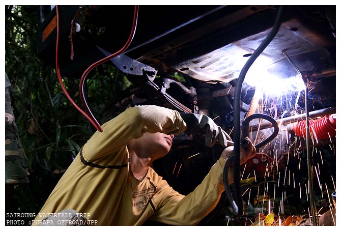 เช้าวันนั้นมีเพื่อนออฟโรดหลายคนขับรถผ่านมาทักทาย ก็จะคุ้นซามูไรสองคันที่จอดเลียแดดยามเช้าที่ตลาดทองผาภูมิ