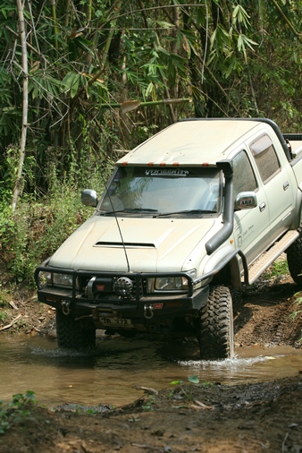 ลำห้วยช่วงนี้ น้ำไม่เยอะเท่าไรนัก สำหรับเข้าเสือซ่าที่มาพร้อมยาง BF จึงต้องขับอย่างระมัดระวังอย่างเต็มที่ ผิดฟอร์มจากที่เคย