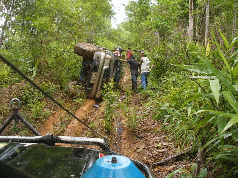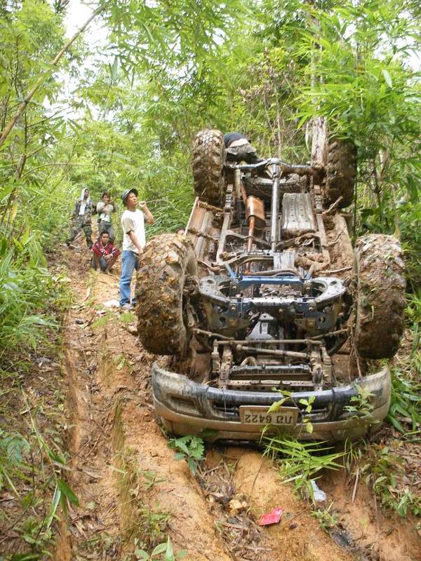 ลงเนินชันมากยาวและลื่น แค่ประคองให้อยู่ในทาง สุดท้ายรถหยุดขวางตั้งฉากกับทางด้านล่าง (ไม่ลังกา)...