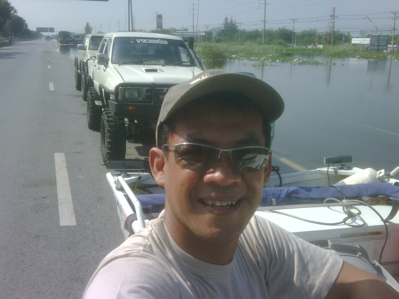 เปลี่ยนลุคจากออฟโรดเดอร์ มาเป็นชาวสวนประสบภัยน้ำท่วม.....