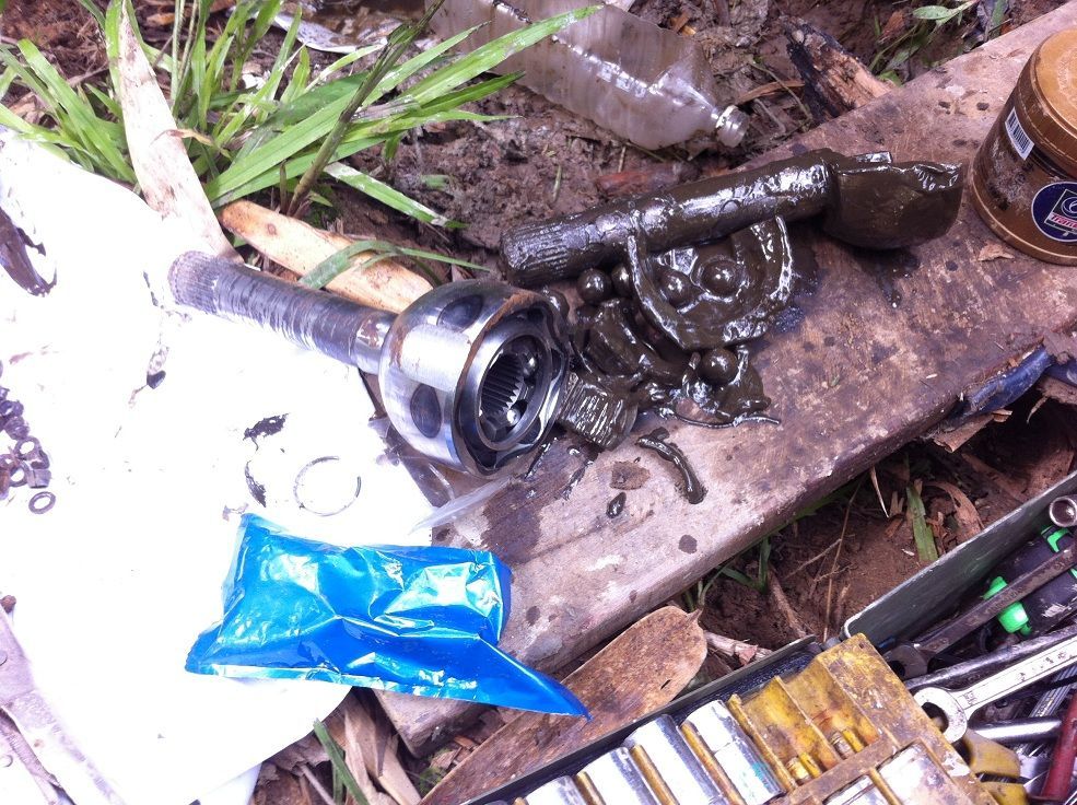 สลิงขาดยังไม่พอ ยังมีงานแถมมาอีกคือ ...... CV Joint แตก !!!