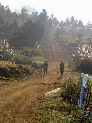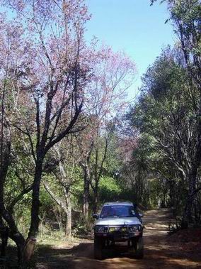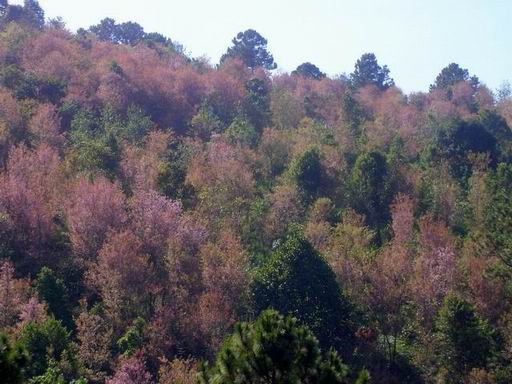 สภาพปัจจุบันรกร้างมาก ผมเองก็อยากพักนอนสัมผัสความงามของที่แห่งนี้ แต่การนอนพักริมทางคงไม่ปลอดภัยนักในสภาพเช่นนี้ ถนนพาผมมุ่งหน้าลัดเลาะไปตามสันเขาสักพักก็ตัดลงหุบทันที สภาพสองข้างทางเริ่มมีแนวต้นพญาเสือโคร่งขึ้นอยู่ตลอด และก่อนที่แสงสุดท้ายของวันนี้จะหมดไปผมก็เดินทางมาถึงโครงการบ้านเล็กในป่าใหญ่ ดอยดำ