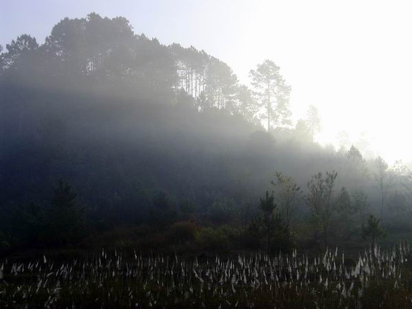 สายหมอกยังคงเคล้าคลอยอดไม้อยู่ตลอด