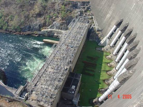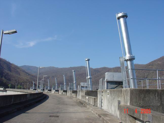 สันเขื่อนและเสาไฮดรอลิคของประตูระบายน้ำ