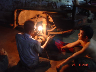 เตรียมการดี 2คันออกไปหาอะไหล่และรับช่าง ที่เหลือช่วยกันถอด ปรากฏว่าอะไหล่ไม่มี ช่างไม่อยู่