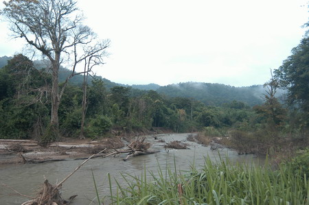 สภาพลำน้ำน้อยหน้าหน่วย ทย8 ตอนนี้มีแต่ซากต้นไม้ที่น้ำพัดมา และตลิ่งก็ถูกกัดเซาะจนพัง ประกอบกับลำน้ำที่ไหลเชี่ยว เปรียบได้กับปราการธรรมชาติที่ปกป้องผืนป่าให้ได้พักผ่อนบ้าง