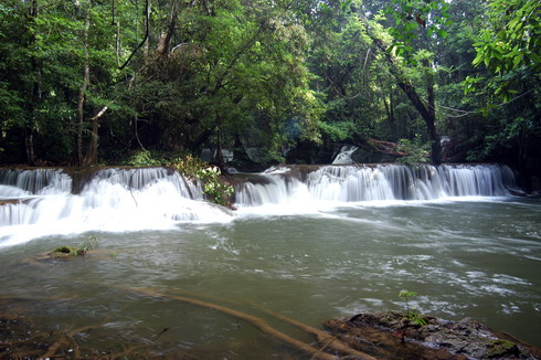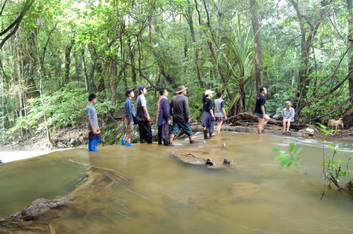 โดยมีอาโพ่ เจ้าหน้าที่ป่าไม้อาวุโสนำทางไป ช่วงแรกๆก็เดินไปตามทางเท้าหลังจากนั้นก็ลัดเลาะปีนไต่ไปตามน้ำตก