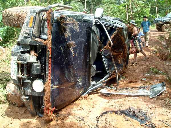 แต่กรณีพี่หนอนช่วงนั้นพี่หนอนขับอยู่คันเดียวเนื่องจากมีปัญหาเรื่องเกียร์ ตั้งใจว่าจะจอดซ่อมจึงให้หนูขาวขับนำไปก่อน ส่วนกลุ่มหลังยังตามมาไม่ถึง ซึ่งช่วงที่พี่หนอนถอยหน้าถอยหลังเพื่อจะหาที่หลบเพื่อซ่อมเกียร์ ไม่ทันสังเกตุก้อนหินที่อยู่ตรงกลางทางซึ่งมีต้นไม่ขึ้นบังอยู่ ทำให้ปีนขึ้นไปหงายท้องอย่างที่เห็น ซึ่งตอนนั้นถ้าพวกเราขับตามหลังมาคงบอกพี่หนอนว่ามีหินอยู่อุบัติเหตุคงไม่เกิด