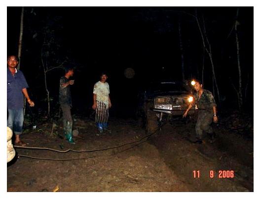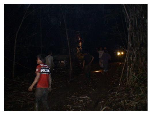 จากความฝันอันเลือนลางที่จะได้ออกไปจากเส้นทางสายหฤโหดแห่งนี้...ก้อได้จุดประกายขึ้นอีกครั้ง...เราเห็นแสงไฟจากรถที่กำลังวิ่งสวนเข้ามา... เราได้กลับแล้ว... รถช่างอั๋น...ช่างชา และบรรดาลูกน้อง..เข้ามาช่วยพวกเราพร้อมอาหารและน้ำ...