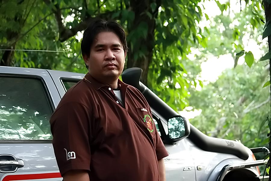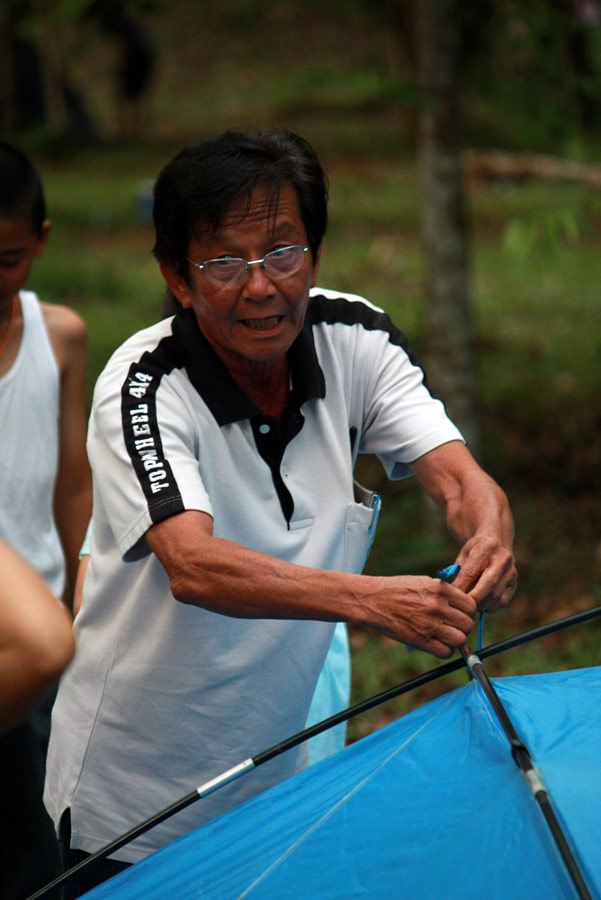 ลุงไหว จากกลุ่ม Black Bison ปากน้ำสมุทรปราการ มาถึงก็กางเต้นท์จัดแจงเรื่องที่พักกันก่อนเลยครับ