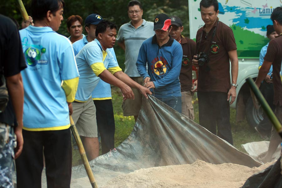 ได้เวลาผสมแร่ธาตุ ก่อนจะนำไปสร้างโป่ง