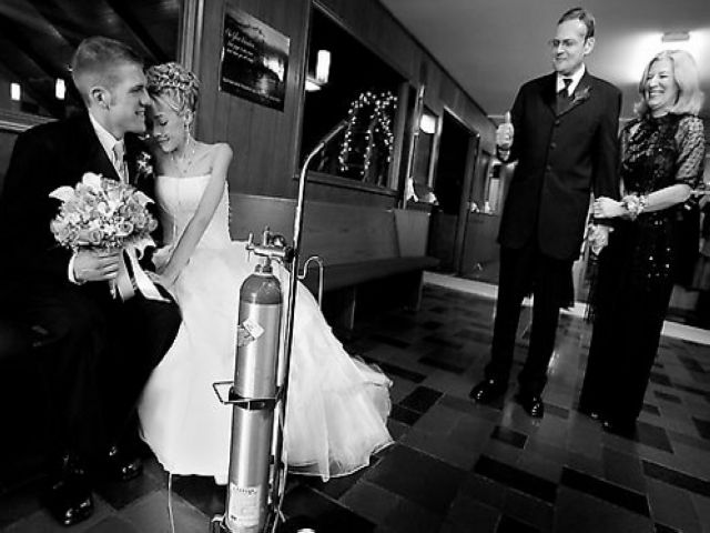 An unusual accessory at the party was the oxygen tube that Katie used throughout the ceremony and reception as well.