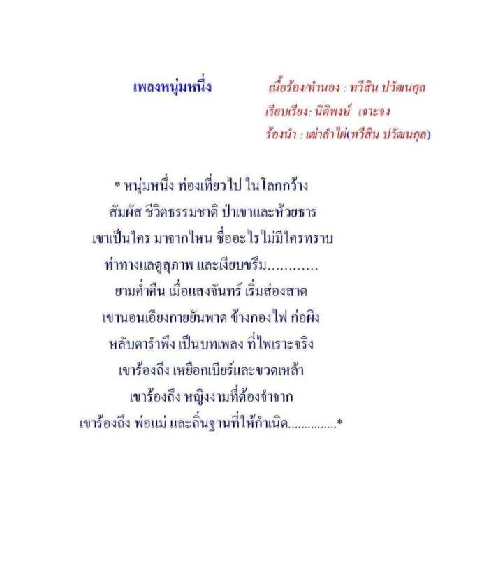 เดี๋ยววันจันทร์ ผมจะนำเอาเนื้อหาสาระของเพลงมาให้เพื่อนสมาชิกครับ ส่วนเสียงเพลงคงจะตามมาไวๆนี้โดยน้าหมูจะเป็นผู้นำมาและน้าหมูเองจะต้องพิจารณาย่อคำตอบที่1-2 ให้พอดีกับหน้าจอให้กระผมแน่ๆเลย ขอบคุณ.....