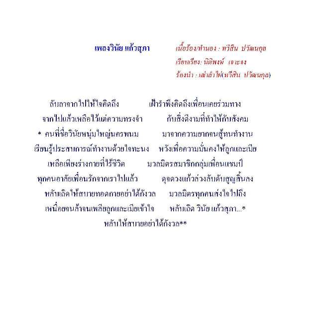 เพื่อนสมาชิก หากเนื้อหาสาระบกพร่องประการใด หรือไปพาดพิงกระทบถึงใครในนามทีมงานกราบขออภัยไว้ ณ ที่นี้ด้วย ความบันเทิงในแผ่นเพลง เพื่อความบันเทิงเท่านั้นครับ