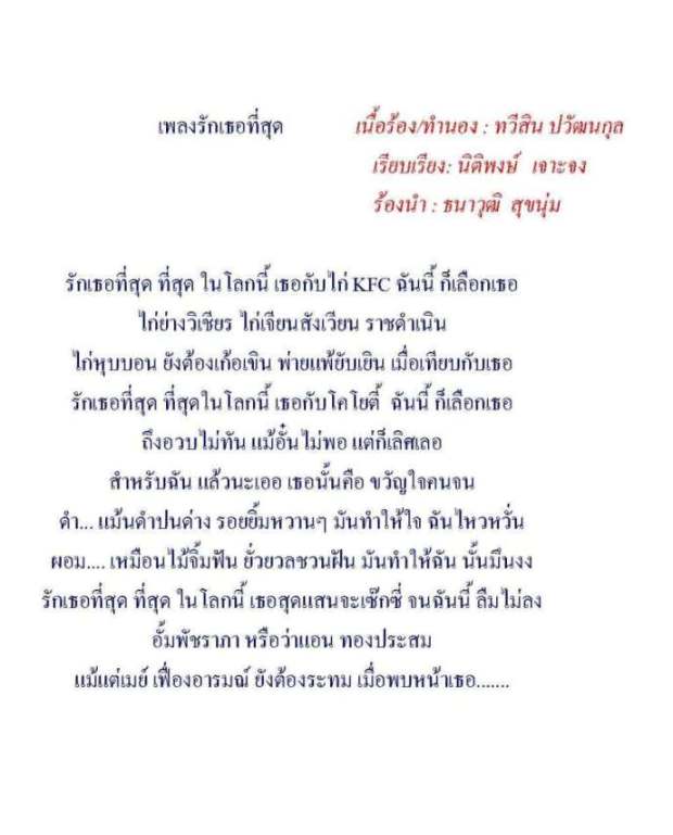 เพราะอะไรถึงร้องเพลงนี้....ฝากนายสถานีตอบไปเลยว่า...เพราะรักเธอที่สุดงัย.....