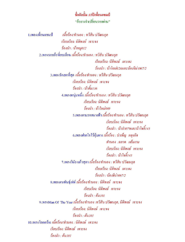 อัลบั้ม13ปีเพื่อนแชมป์ @ล้อยางจำเปลี่ยนรอยผ่าน@ (พร้อมเนื้อเพลง)