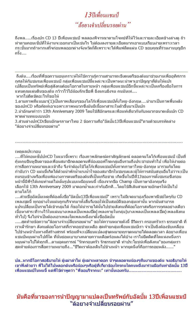 คลอดออกมาอย่างสมบูรณ์จากหงเหิรสตูดิโอแล้วครับเพื่อนสมาชิก อัลบั้มพิเศษหยิบหามาไว้ครอบครองได้ในจุดสตาร์ทแรลลี่ จุดลงเวลา หรือในงาน13ปีเพื่อนแชมป์ครับ........