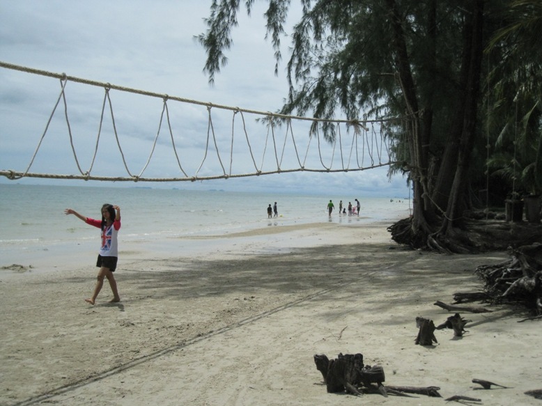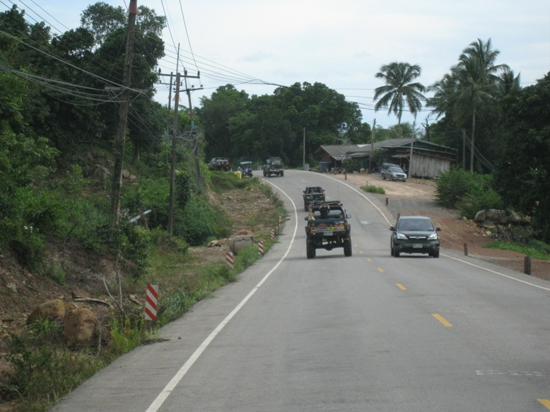 บ่ายคล้อยคาราวานได้มุ่งหน้าสู่จุดท่องเที่ยวที่ 3 สู่บ้านหาดเล็กแผ่นดินไทยที่แคบที่สุดอยู่ที่นี่ครับท่านผู้อ่าน วัดความกว้างจากสันเขาถึงทะเลระยะทาง 450 เมตร บริเวณหลักกิโลเมตร 81-82 ทางหลวงแผ่นดินหมายเลข318 แวะพักทักทายถ่ายรูปกันพอสมควรแก่เวลาทั้งขบวนมุ่งหน้าสู่จังหวัดเกาะกง