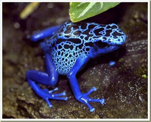 กบลูกดอกสีน้ำเงินนั้นเป็นสัตว์ ที่อยู่ในป่าฝนในทวีปอเมริกากลางและอเมริกาใต้ เป็นกบที่มีสีสันสวยงามแต่พิษของมันร้ายแรงมาก พิษของกบลูกดอก 1 ตัว สามารถฆ่าคนได้ถึง 10 คนและหนูถึง 20,000 ตัว พิษของมันเพียง 5 ไมโครกรัม (เท่ากับปลายเข็ม) ก็สามารถฆ่าคนและสัตว์เลี้ยงลูกด้วยนมที่มีขนาดใหญ่ๆได้ พิษของมันถูกนำมาใช้ ในลูกดอกอาบยาพิษของอินเดียแดง มันจึงถูกเรียกว่ากบลูกดอก