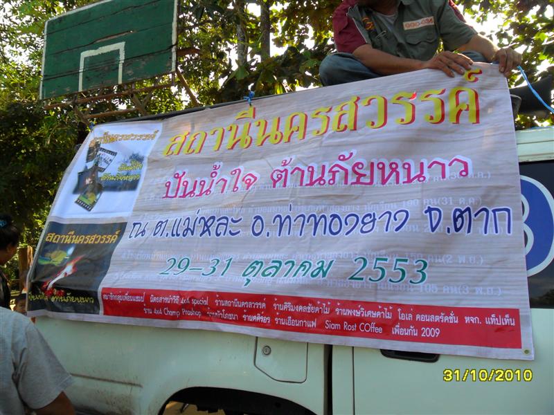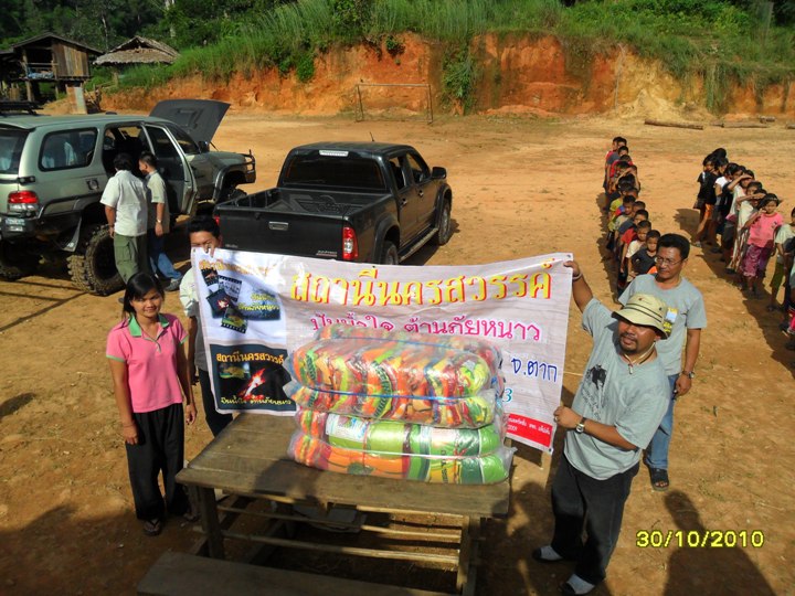 การเดินทางบนพื้นที่สูงขอบเขตแดนเหนือของไทย ต่างกรรมต่างวาระกันในหลายๆครั้ง เราผ่านแล้วไม่เคยผ่านเลย บนดอยสูงสันเขาขอบเหว หย่อมบ้านชาวเขาต่างๆประชากรล้วนเป็นคนไทยที่อยู่อย่างไร้โอกาสแม้จะพยายามร้องหาก็เป็นเพียงเสียงที่แผ่วเบา คือข้อเท็จจริงที่เราได้พานพบมาหลายครั้งหลายหนที่เราได้ระดมปัจจัยสี่ต่างๆขึ้นไปช่วยผ่อนคลายแบ่งเบาคนภูเขาเหล่านั้นยิ่งทำให้เราเข้าใจวิถีชีวิตความเป็นอยู่ของพวกเขาที่คอยเฝ้าป่าต้นน้ำมาเนิ่นนาน ในการณ์นี้ เราร้านสถานีนครสวรรค์ พร้อมแบ่งปันน้ำใจภายใต้โครงการ สถานีนครสวรรค์ ปันน้ำใจ ต้านภัยหนาว ความสำเร็จของโครงการขึ้นอยู่กับลูกค้าผู้มีอุปการะคุณให้การสนับสนุนและเพื่อนพ้องน้องพี่ทุกๆคน........