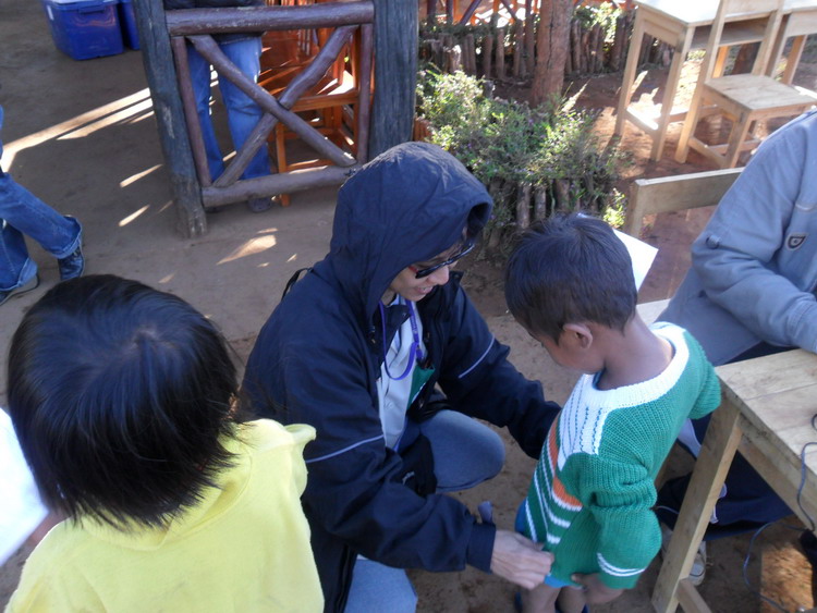 คุณหมอนำเสื้อกันหนาวมาแจกเด็กๆครับ