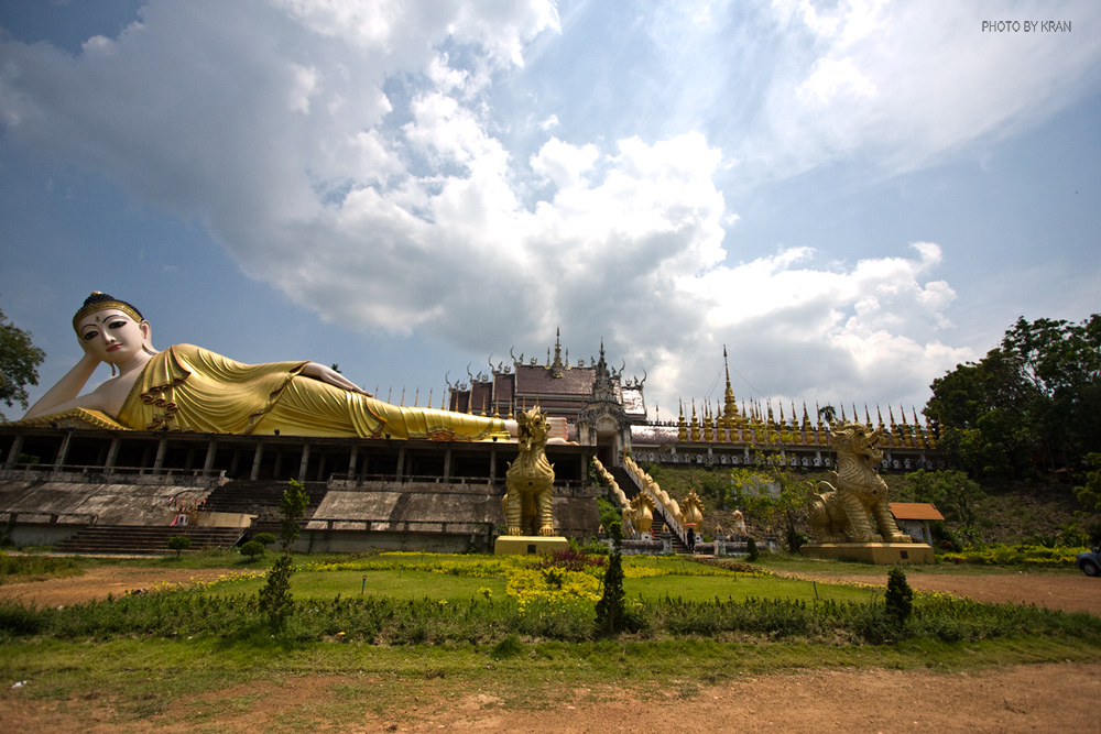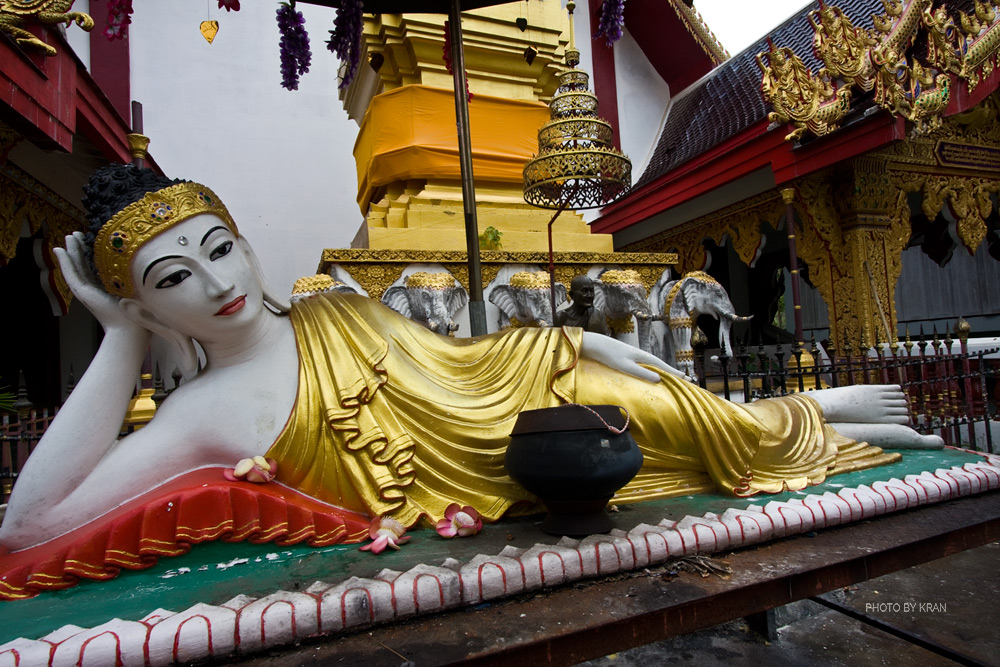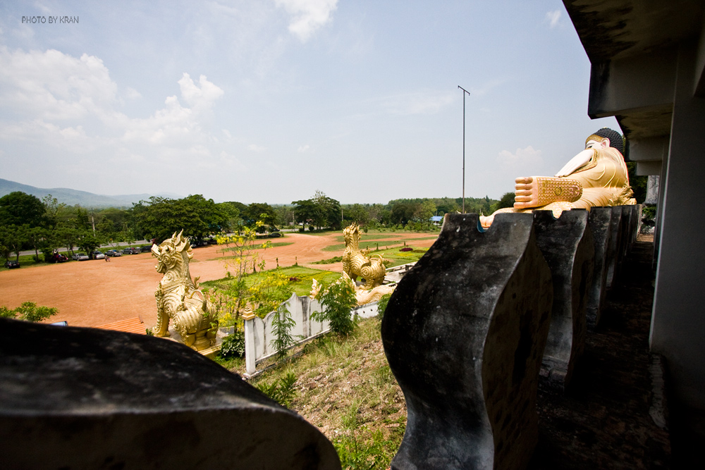 เดินขึ้นไปมองผ่านด้านหลังองค์พระนอน สวยงามไปอีกแบบครับ