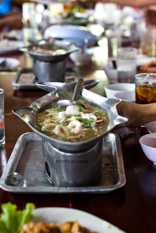 ไปถึงตอนเที่ยงๆนั่งรอเรือของร้านมารับ นั่งเรือออกไปในทะเลประมาณ 10 นาที ก็ถึงร้านครับ