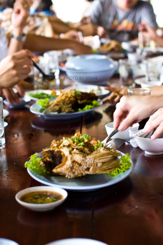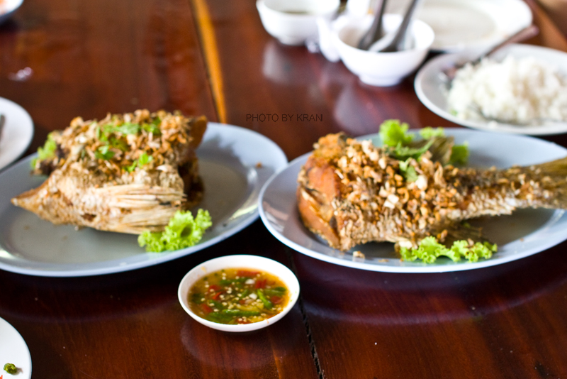 ปลากระพงทอดราดน้ำปลาตัวใหญ่ต้องแบ่งเป็น 2 จานเลยฮึๆๆ