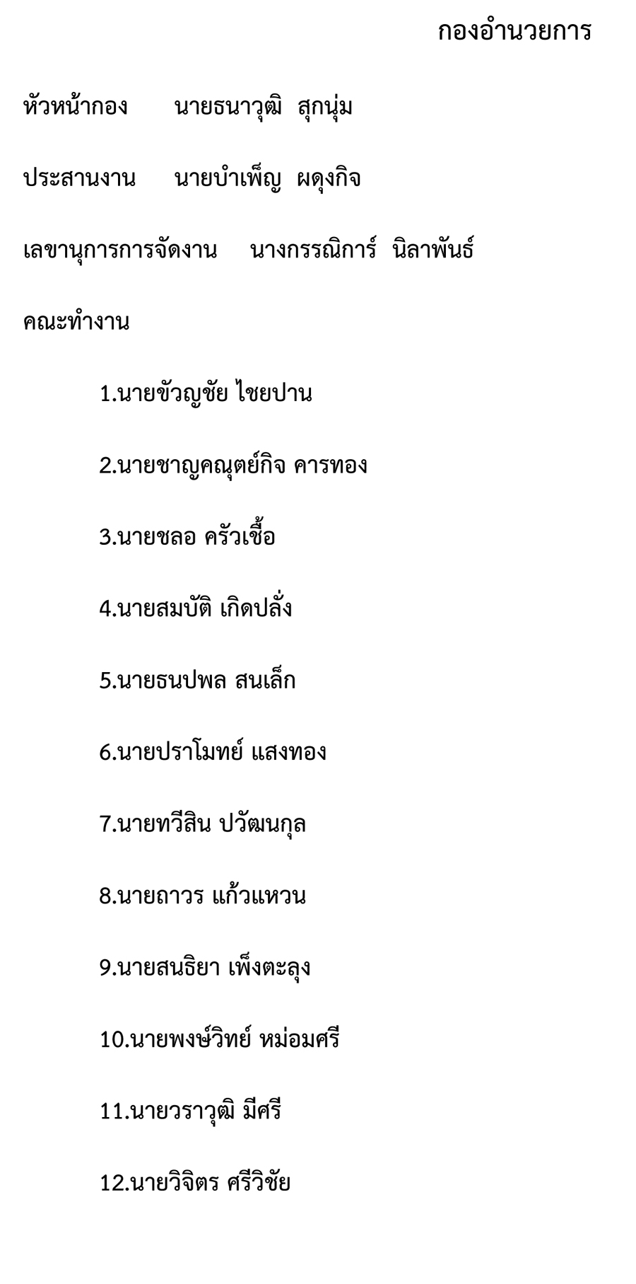 1) ปรึกษาและประสานงานกับกองการจัดงานทุกกอง ในวันงาน