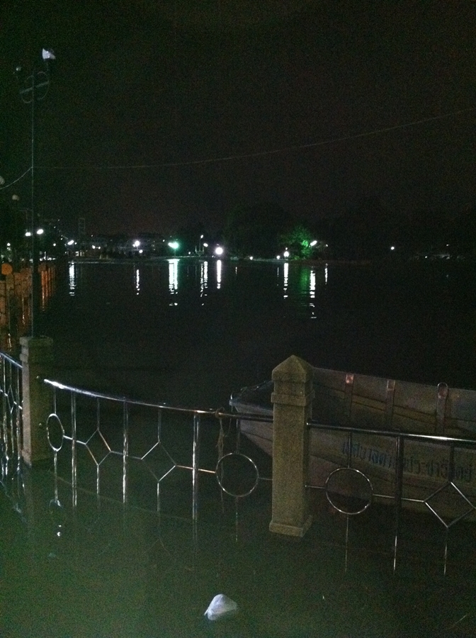 ที่หมู่บ้านรัตนโกสินทร์ 200 ปี ต.ประชาธิปัตย์ อ.ธัญบุรี จ.ปทุมธานี น้ำเอ่อ จากท่อผุดขึ้นทำให้ระดับน้ำในหมู่บ้านเพิ่ม สูงขึ้น 50-80 ซม. ส่วนแนวคันกั้นน้ำบริเวณ ริมทางรถไฟระดับน้ำปริ่มคันกั้น เจ้าหน้าที่เทศบาลนครรังสิตได้ประกาศประชาสัมพันธ์ ให้ประชาชนย้ายรถยนต์ออกไปไว้ข้างนอก และขนย้ายข้าวของขึ้นที่สูง ประชาชนหลายคนเริ่มอพยพออกจากพื้นที่แล้ว