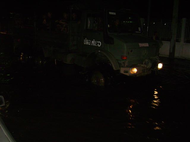 เช่นเดียวกับสถานการณ์ที่อ.เมืองปทุมธานี ขณะนี้เข้าขั้นวิกฤติทุกตำบลและ หมู่บ้านจมบาดาลหมดแล้ว ตั้งแต่แยก ปทุมวิไลไปถึง เขต อ.ลาดหลุมแก้ว ชาวบ้าน เดือดร้อนไปทั่ว ขณะที่ศูนย์อพยพมีไม่เพียงพอ ต้องอาศัยเกาะกลางถนนเป็นที่พักพิง ถนนทุกเส้นน้ำท่วมกว่าหนึ่งเมตรแล้ว การสัญจร ตอนนี้ชาวบ้านต้องเดินลุยน้ำกว่าเมตรออกมาหาอาหาร ข้าวสาร น้ำดื่ม เครื่องใช้ที่จำเป็น บางรายมีเรือก็พายเรือกันออกมา และบางหมู่บ้านก็ถูกตัดน้ำตัดไฟแล้ว