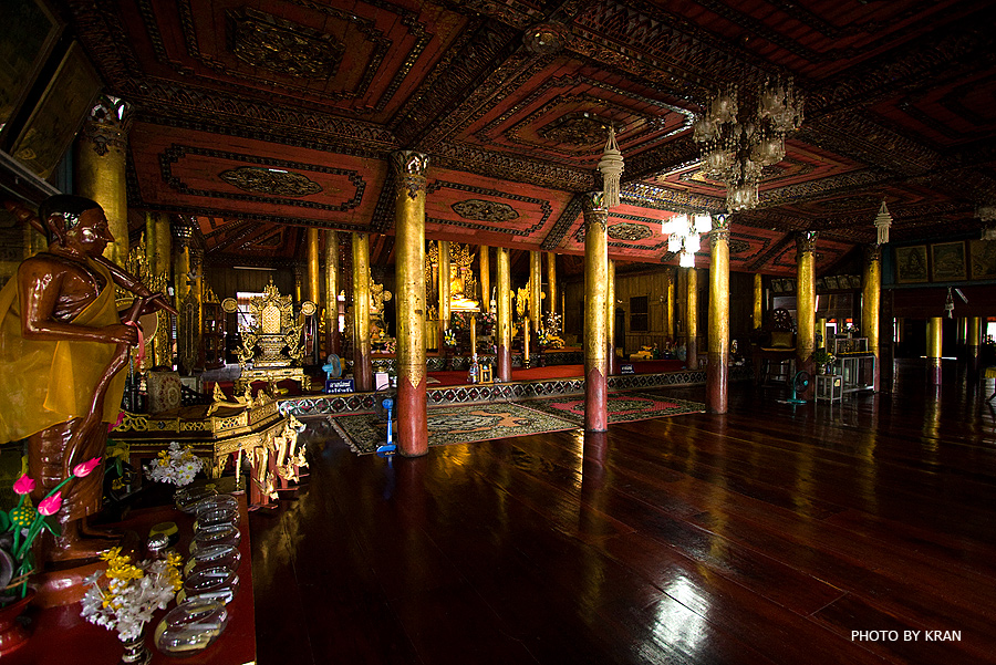 วัดนี้สร้างด้วยไม้สัก รวมถึงองค์พระ ก็สร้างด้วยไม้ ศิลปะพม่า ครับ