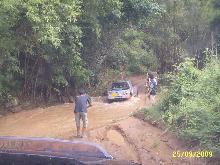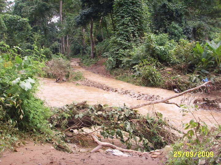 ระหว่างทางไม่ได้ถ่ายเลย เพราะมัวสนุกกับเส้นทางอยู่ แต่ก็เป็นห่วงว่า รถ ทันตกรรม พอ.สว.จะเข้าพื้นที่ ไม่ได้ เพราะฝนตกทุกวันเลย และรถทันตกรรม ก็มีน้ำหนักมาก ถึง 3 ตันกว่าๆ ...................ถึงคลองแรกก็ประมาณนี้เลย