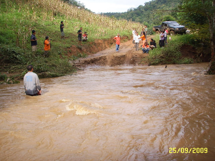 ข้ามไปแค่ 3 คัน เพื่อจะเข้าไปประสานงานกับชาวบ้านว่า รถทัตกรรมไม่สามารถเข้ามาให้บริการได้ในวันพรุ่งนี้ ขับไปอีกไม่ถึง 50 เมตรก็เจอสภาพนี้