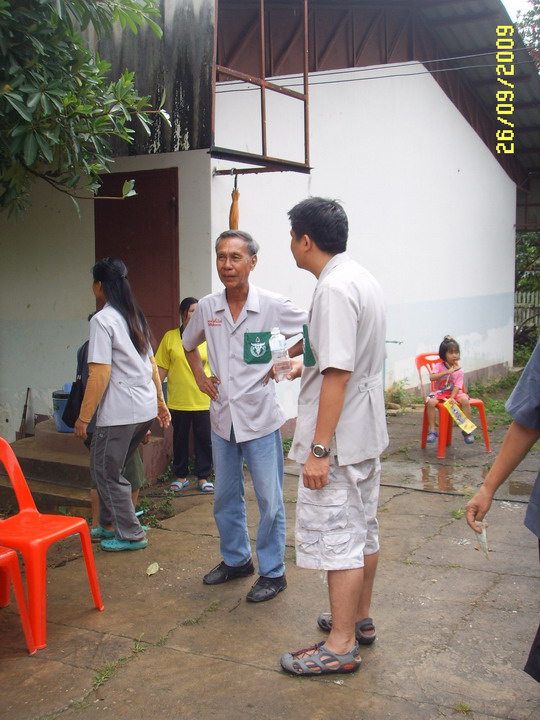 ผมและพี่ ตู่ ประธาน Mud company และคุณ ลุง ณรงค์ จึงต้องออกไปติดต่อประสานงานกับ รร.บริเวณ ใกล้เคียง เพื่อที่จะได้ออกไปหาสถานที่ให้บริการในวันพรุ่งนี้ได้ และก็ได้รับความกรุณาจากผู้ใหญ่บ้าน แม่ระเมา ให้ใช้สถานที่ในการให้บริการในวันพรุ่งนี้