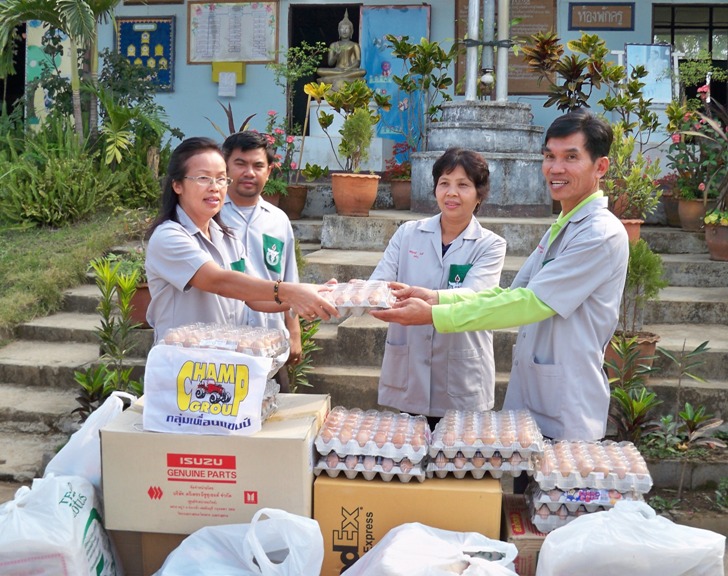 มอบข้าวสารอาหารแห้งและปัจจัยสี่อื่นที่ได้มาจากคอนเสิร์ตเด็กดอยคอยหมอ นำส่งเข้าครัวแต่ละโรงเรียนจำนวน 6 โรงเรียน